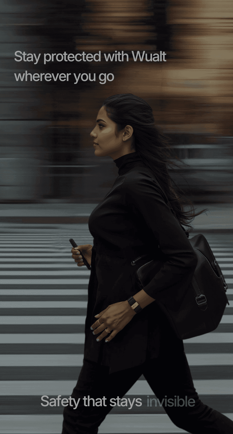 Wualt wearables combine jewellery-grade design with built-in safety, so protection never has to look like a device.
